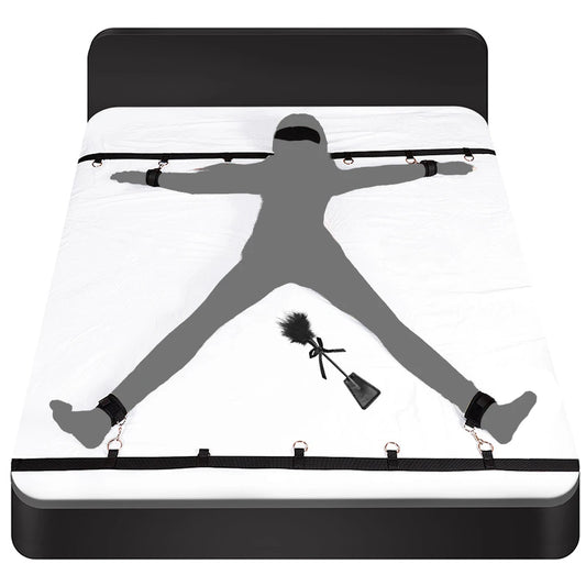 BDSM - Correas de cama, ataduras, ataduras en la cama, juguetes sexuales para adultos, cinturón de ataduras sexuales, coqueteo en la cama, esposas, esposas para los pies, auto-ataduras
