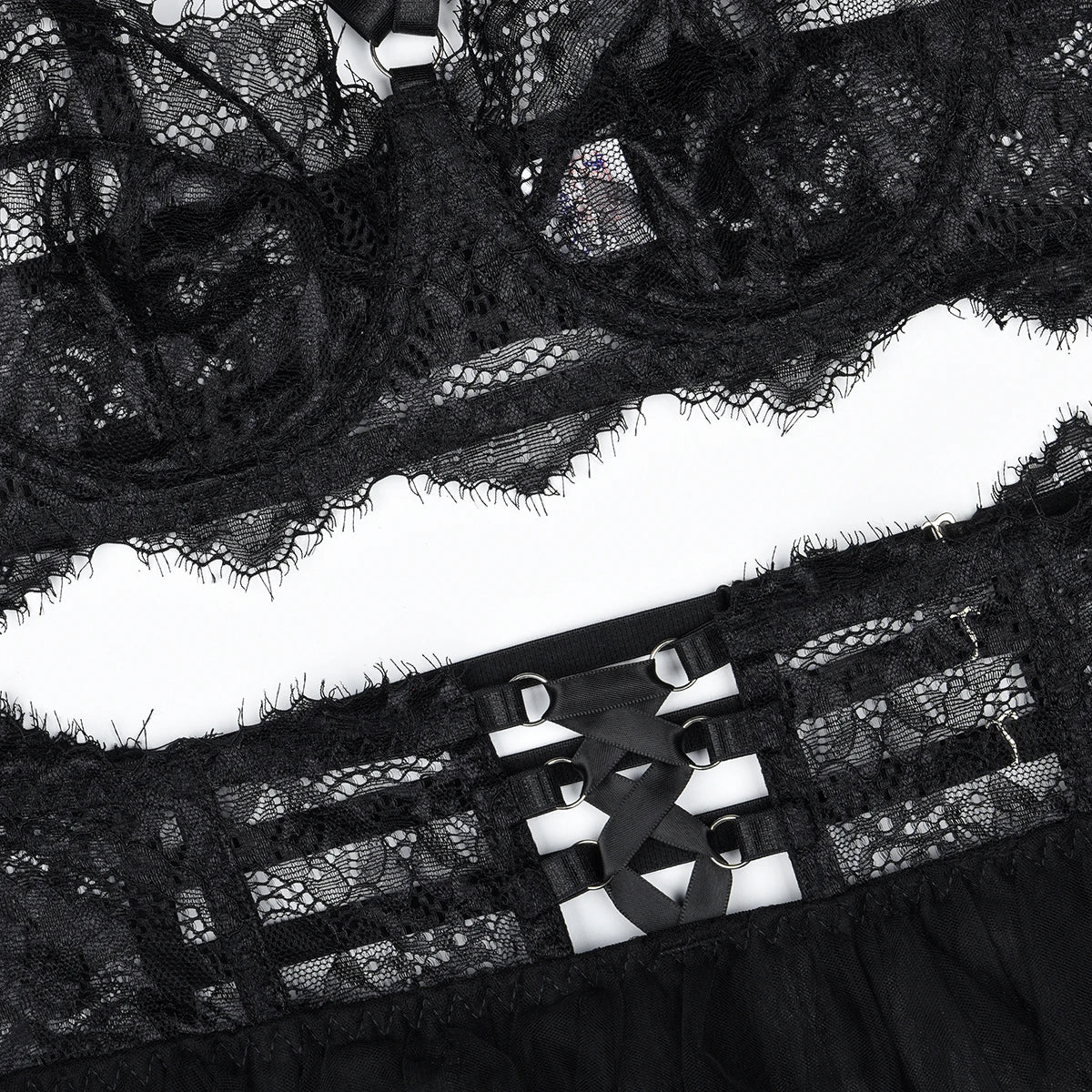 MUZISKAT 2024 - Lencería erótica cómoda de malla transparente con bordado de encaje hueco para Onlyfans
