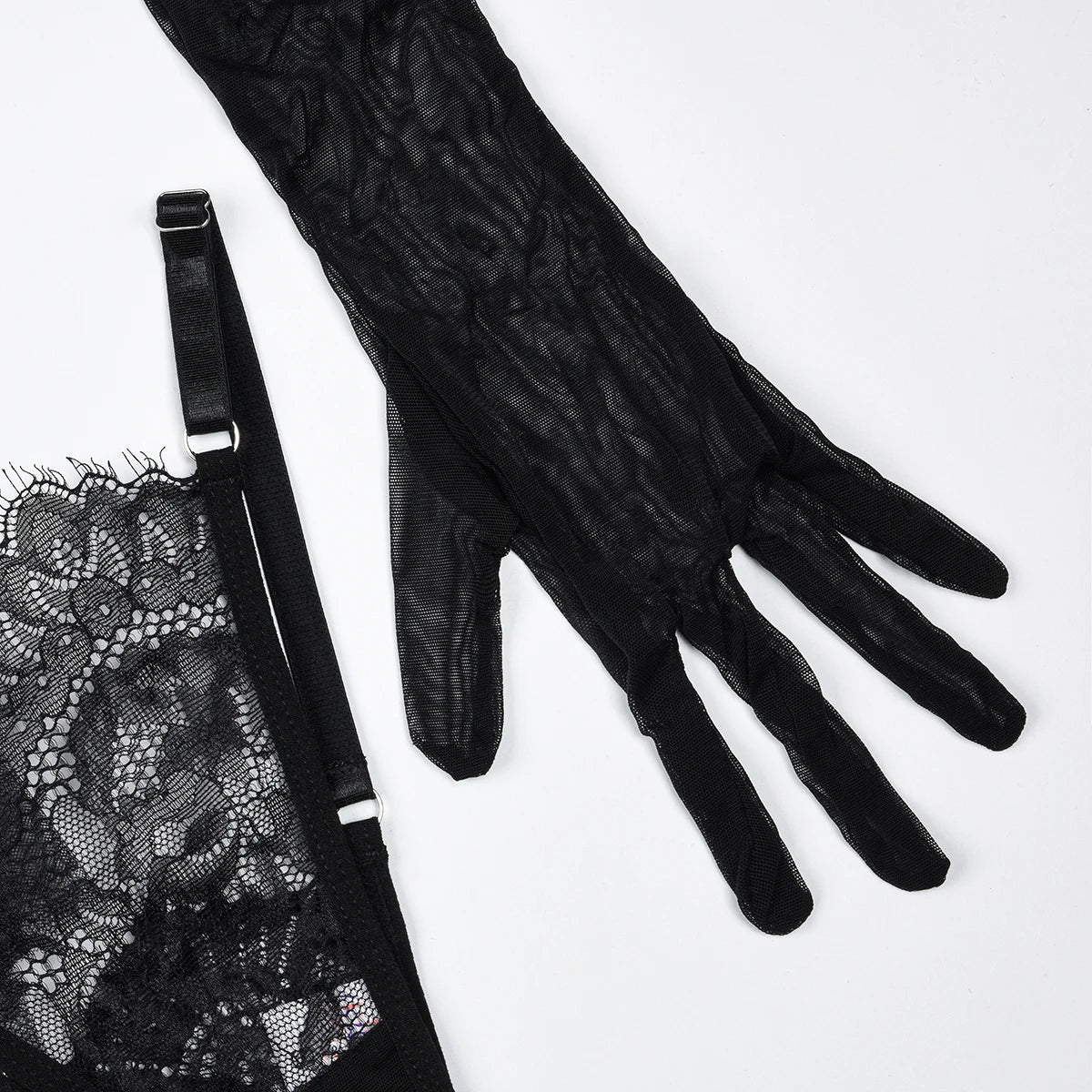 Lencería de encaje para mujer, talla grande 5XL, color negro, sexy, transparente, con tirantes finos, talla 4XL y 5XL